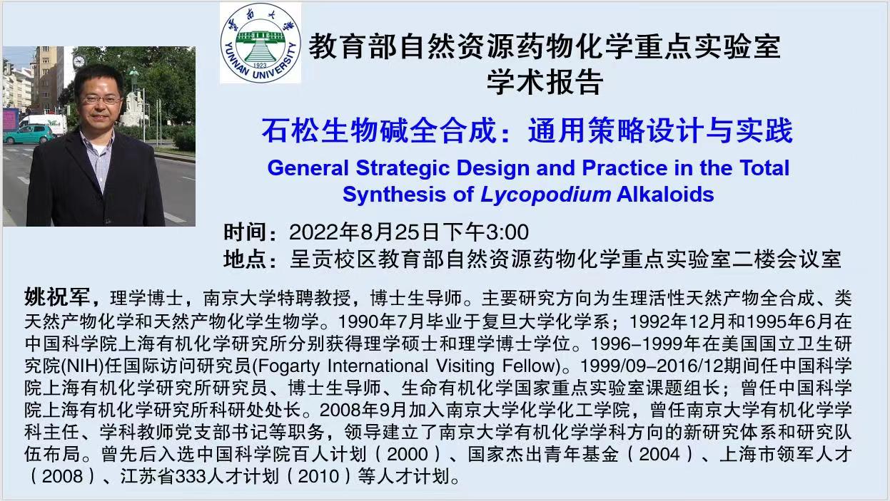 【学术报告】石松生物碱全合成:通用策略设计与实践
